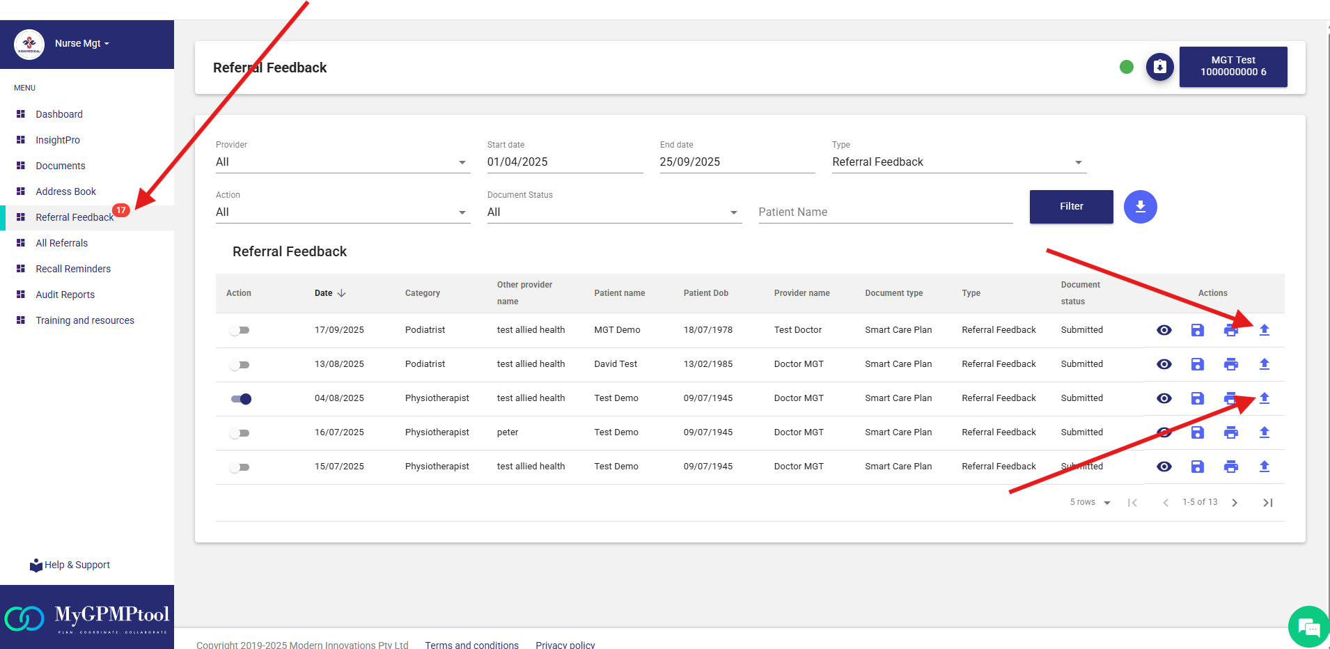You can write your feedback and submit to the practice through MGT portal. 1. Click on Feedback. 2. Click on small + icon on the top right hand side 3. Write your feedback. 4. If you want you can save and exit to complete and submit later. 5. Click ...