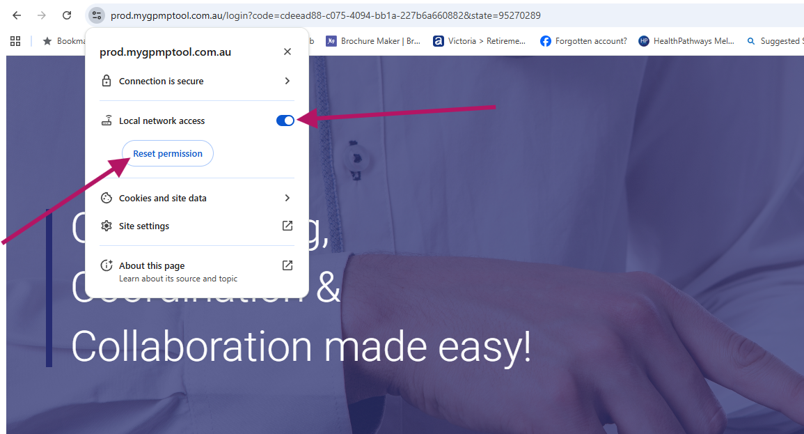 1. Click on the left-hand side of the URL, as in the image below, and click on reset permission.