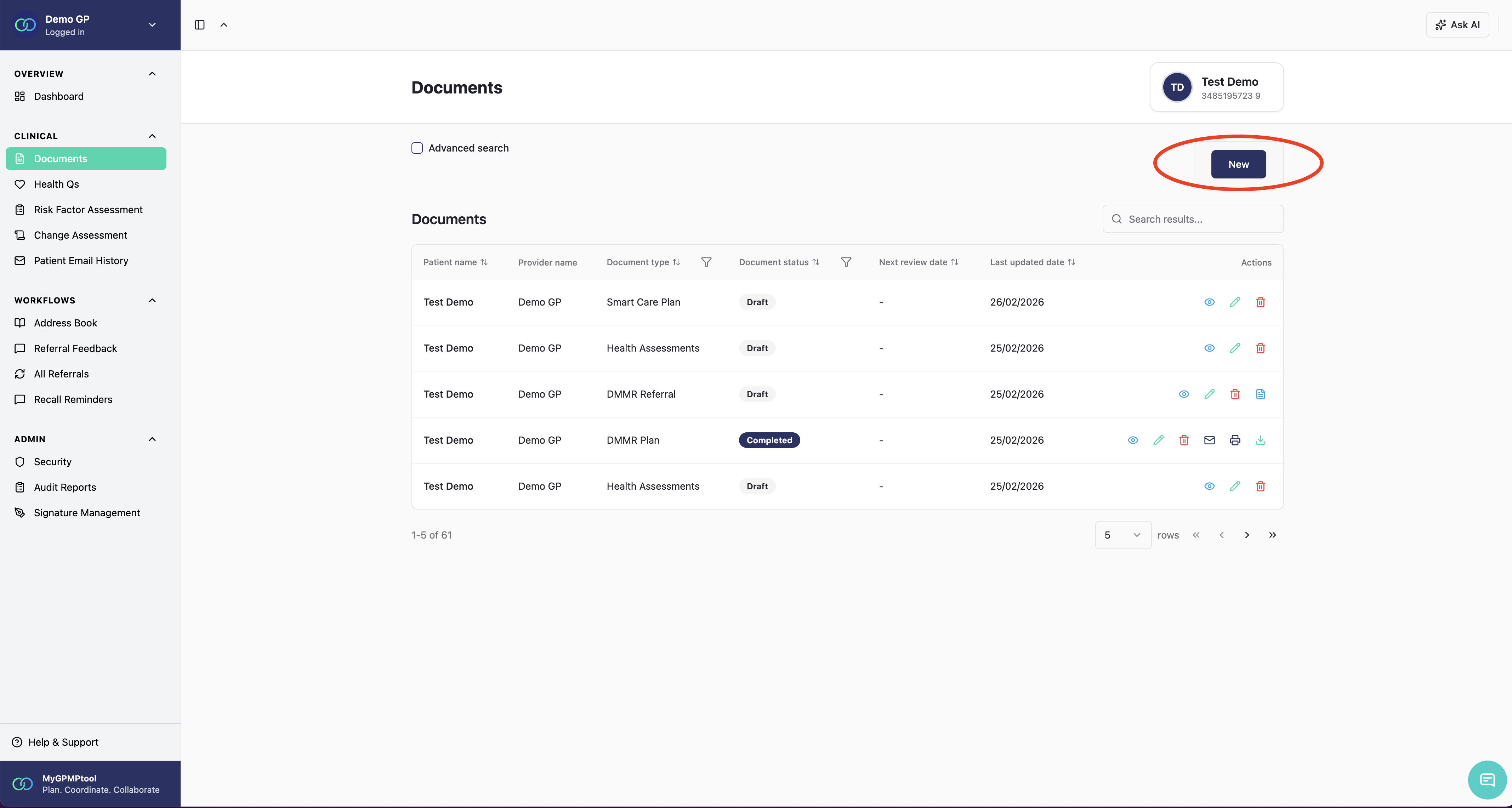 Click on the delete icon as shown in the picture If you delete a draft you can't restore. If you deleted a completed document your practice manager can restore.